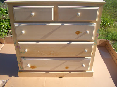 When we bought our house and I moved in along came my childhood dresser and mirror. It has been sitting in our baby room untouched. I contemplated selling in on craigslist but never got around to it. My plan was to get a new piece from Ikea - a grey dresser in the Eglan or Edland design. But it was little hard to chew in price (this was before we even started all of our infertility stuff). Now that we are going the adoption route buying a new dresser was out of the question - especially since I got laid off too (the joys of being a teacher at the bottom of the hiring pole) and it is now discontinued so I couldn't even get it if I wanted it. On to the new plan - lets paint my old puppy grey and use it instead.