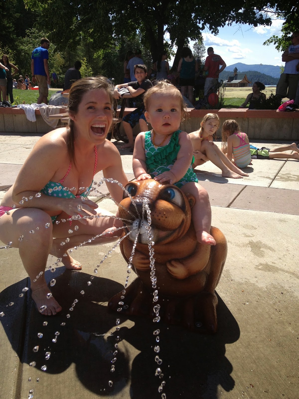 On Sunday we headed out to Coeur d'Alene to a splash pad! This was Ellie's first time (in a bathing suit too) and she went WILD!! I am sure we are going to have to frequent these places often this summer with her!